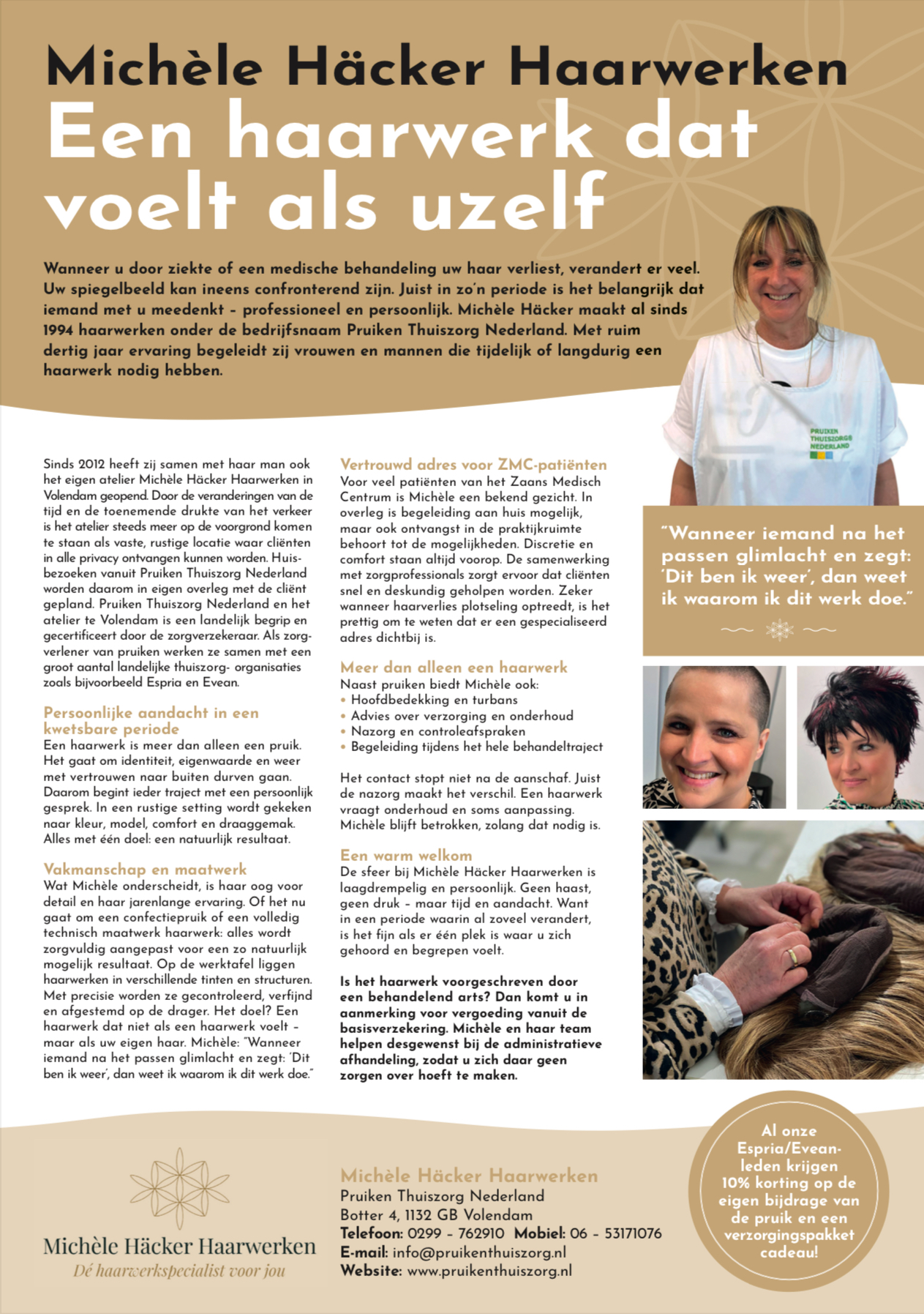 Hoe leuk is het om een artikel te krijgen in het Zaans Medisch Centrum Magazine. Vroeger kwamen we veel op de afdeling Oncologie. Er is veel veranderd. Nu is er dagbehandeling en mogen de meeste patiënten naar huis. Wij komen nog steeds op de (verpleeg)afdeling als het nodig is, maar de meeste cliënten vinden het fijn om naar onze haarwerkpraktijk te Volendam te komen! Het assortiment haarwerken in onze praktijk is nog veel groter als dat we op ons huisbezoek mee kunnen nemen. De rust, de tijd die we voor iedereen kunnen nemen. Onze huisbezoeken of uw bezoek bij ons op locatie, het heeft beide zijn voordeel. In overleg kunnen we samen kijken welke optie het best bij uw wensen past.